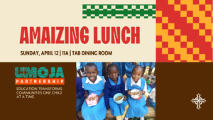 Mark your calendars for the 2026 Amaizing Lunch supporting the Umoja Partnership food security program on Sunday April 12, at 11 am in the Dining Room following worship. Enjoy a new menu of soup and bread. We are now serving lunch to 5453 students daily through your generosity. This year we had 57 students qualify for direct admission into college, our highest number yet. Come and hear the latest updates about this program and see how your donation are helping us change communities one child at a time.